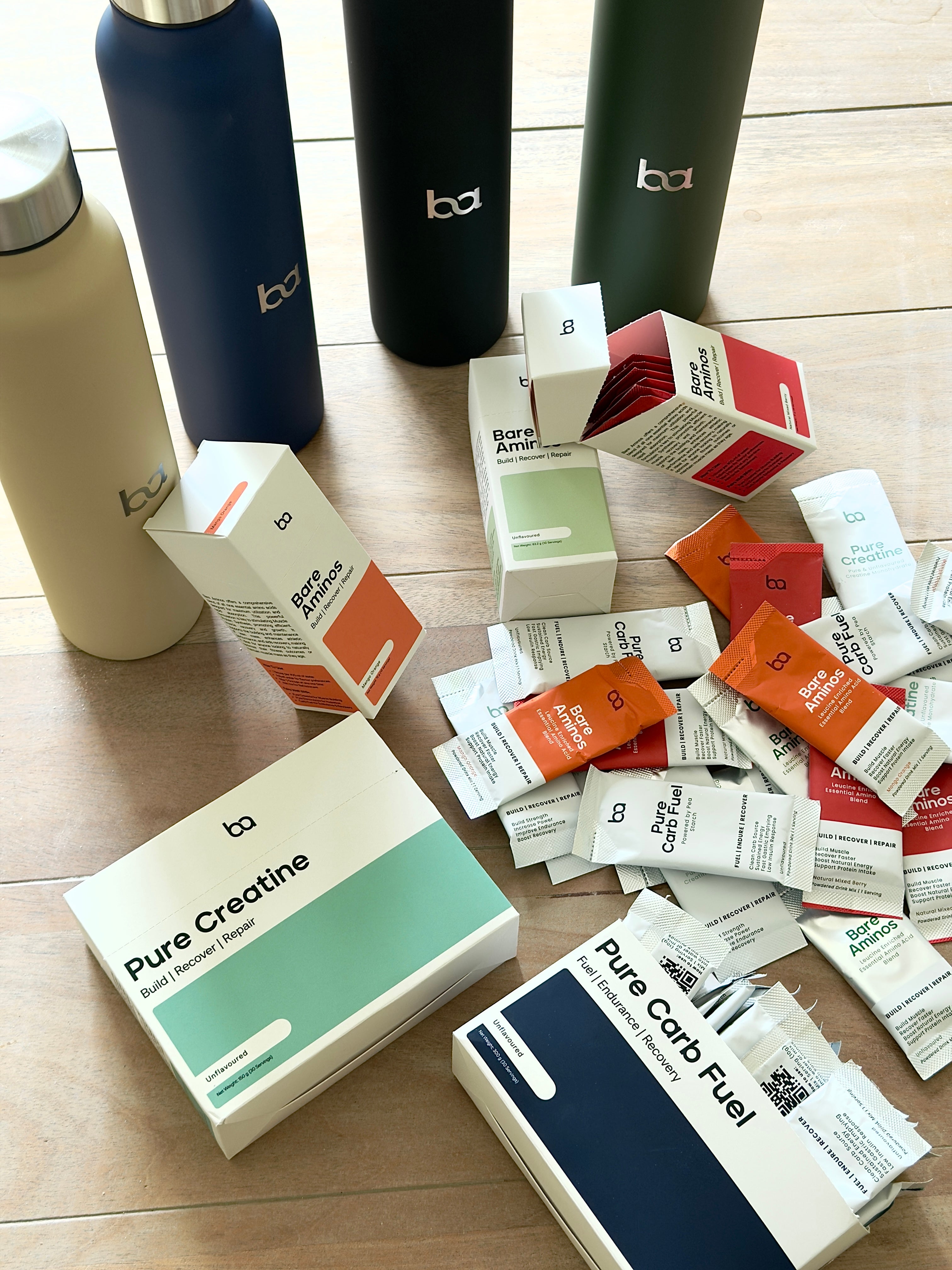 Bare Aminos is your foundation, and from there you customise your blend. Pick your flavour for the day, then mix what you need. Heavy training day? Add Electrolytes and Pure Carb Fuel. Recovery day? Add Creatine. Want a double aminos serving with a subtle electrolyte lift? Done.